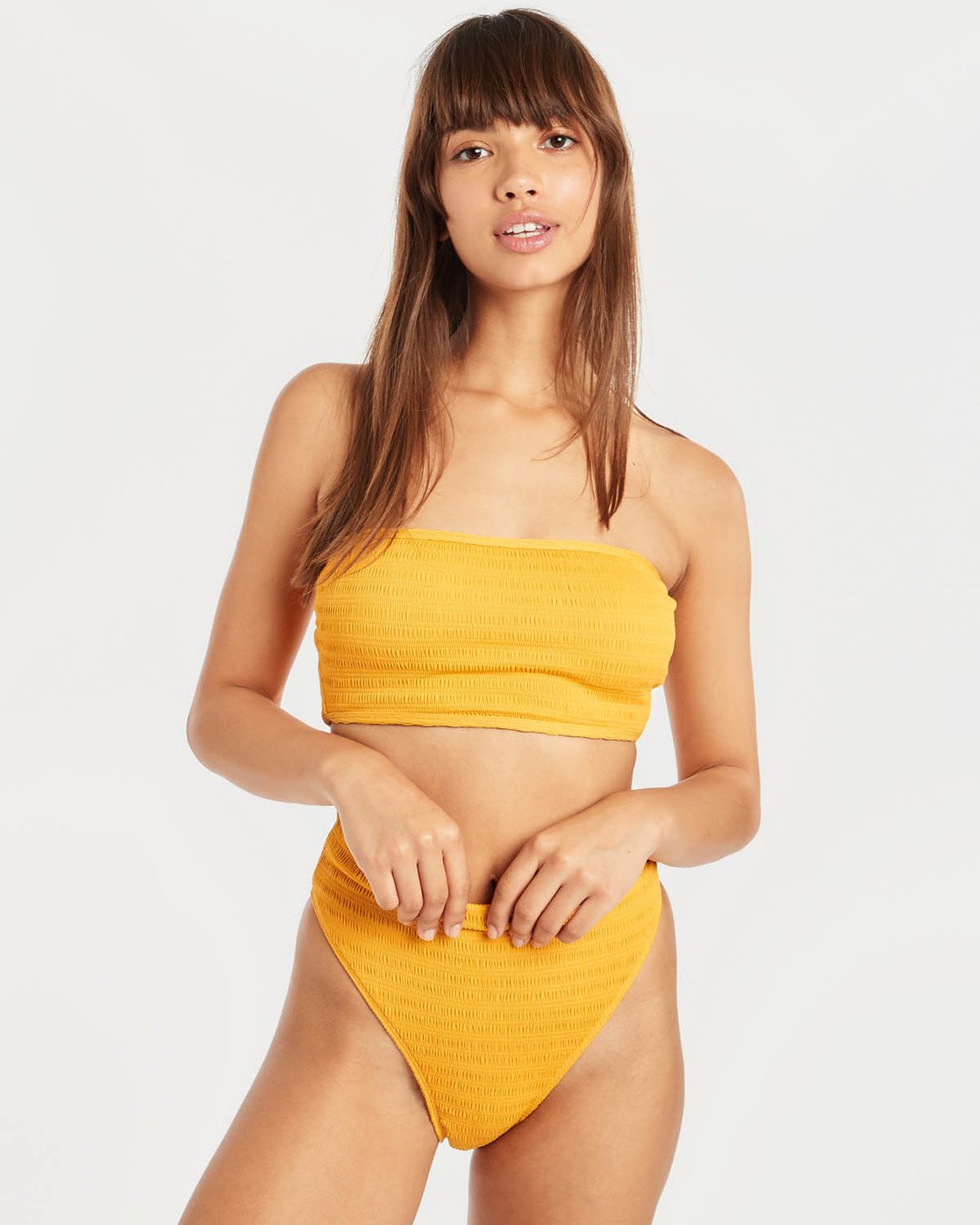 Sun Rise and let your staples shine in this textured take on a solid bikini top. A smocked texture swim fabric is met with a tube top silhouette for a throwback feel.